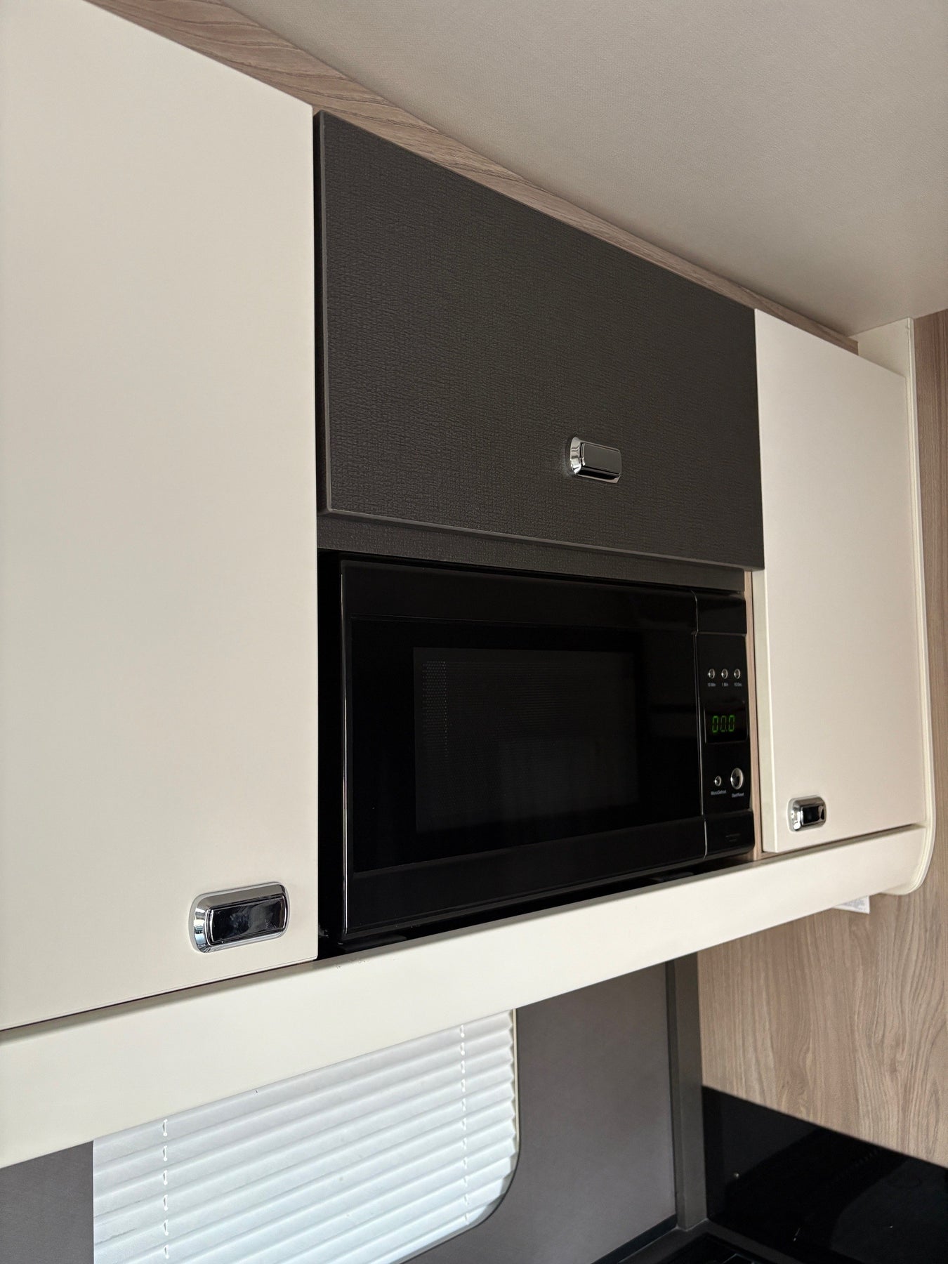 Designed to fit within a cupboard space, in new Swift range including Voyagers these are not fitted as standard and many larger standard microwave models will not fit.